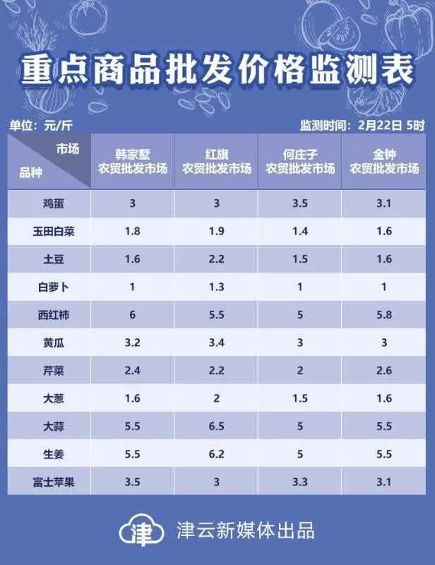 天津部分农贸批发市场重点商品