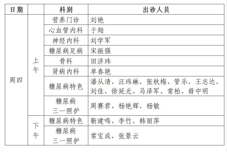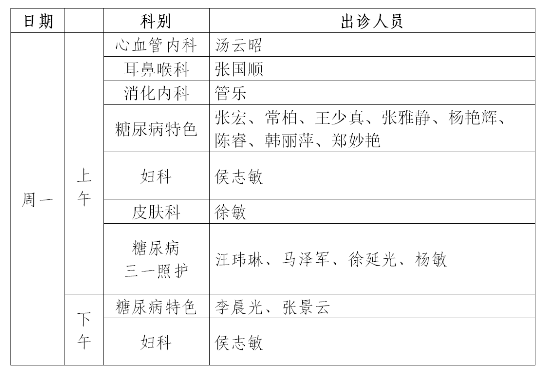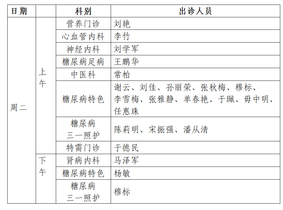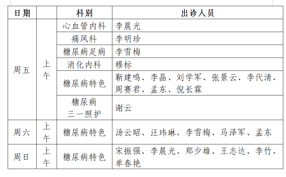 三、出诊时间表